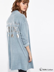 Βαμβακερή ζακέτα με μεταλλιζέ μήνυμα στην πλάτη «Long Live Vintage»