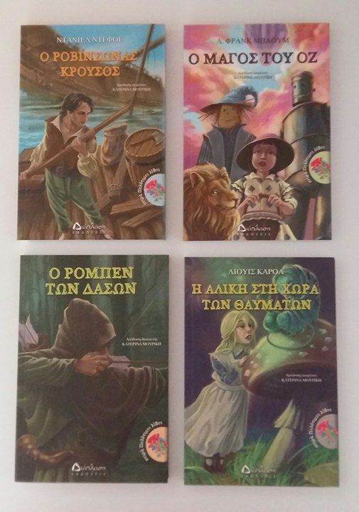 Η ΑΛΙΚΗ ΣΤΗ ΧΩΡΑ ΤΩΝ ΘΑΥΜΑΤΩΝ, Ο ΜΑΓΟΣ ΤΟΥ ΟΖ, Ο ΡΟΒΙΝΣΩΝΑΣ ΚΡΟΥΣΟΣ και Ο ΡΟΜΠΕΝ ΤΩΝ ΔΑΣΩΝ είναι κλασσικά αριστουργήματα που κατά τη γνώμη μου, δεν πρέπει να λείπουν από καμία παιδική βιβλιοθήκη, ή μάλλον από καμία βιβλιοθήκη σπιτιού, που σέβεται τον εαυτό της! Φυσικά, είναι βιβλία που κατανοούν καλύτερα παιδιά άνω των 9 ετών, αλλά η μικρή μου που είναι σχεδόν 5, αμέσως τα πήρε στα χέρια της και άρχισε να τα ξεφυλλίζει. Με μια δική μου περίληψη, στο τι αφορά το κάθε βιβλίο, μου ζήτησε να της τα διαβάσω. Λέω να αρχίσω με την Αλίκη στη χώρα των θαυμάτων, και να της διαβάζω λιγες σελίδες κάθε μέρα… είπαμε είναι και δικό μου αγαπημένο!!!