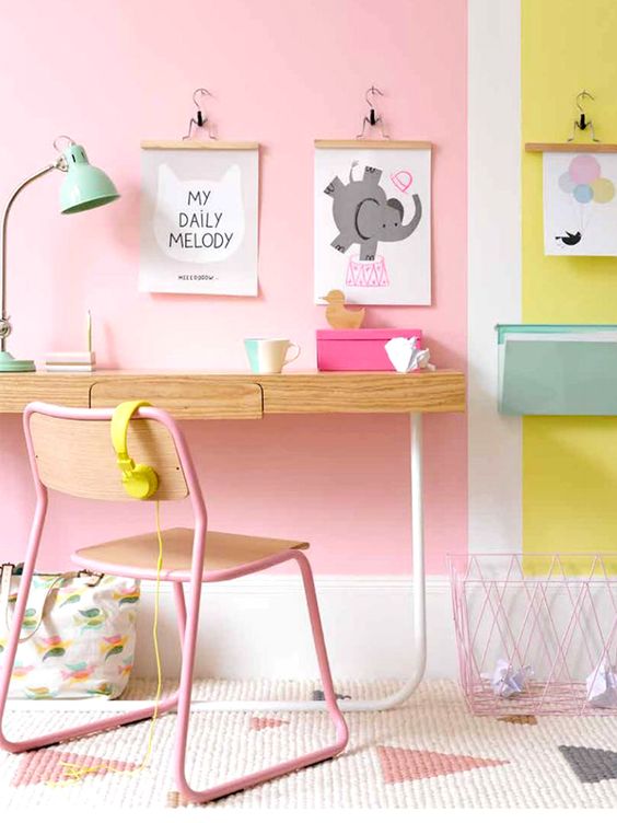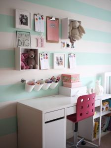 Τα χρώματα της μέντας και του ροζ κυριαρχούν σε αυτό το δωμάτιο. Υπέροχος τρόπος να τοποθετήσεις τις μολυβοθήκες και να βάλεις σε τάξη όλα αυτά τα μολύβια, χρώματα, μαρκαδόρους κτλ, που βρίσκονται συνεχώς πεταμένα σε όλο το σπίτι.