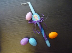 - Λαμπάδα με κορδέλες στα χρώματα της Frozen.