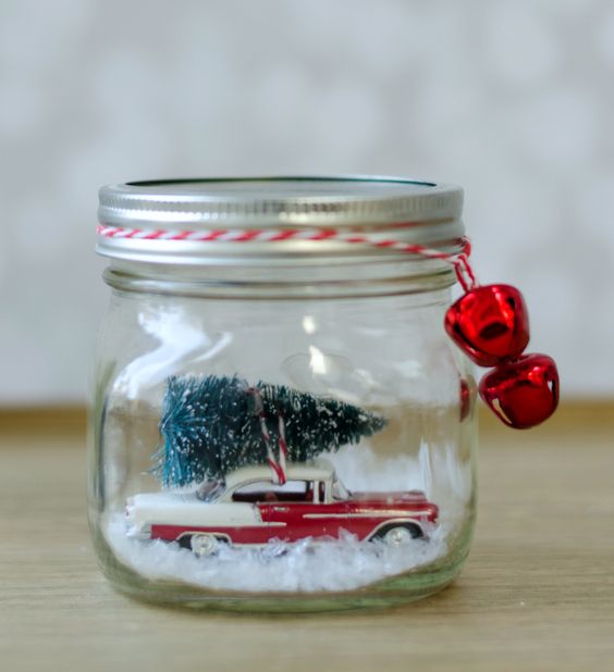 Το μόνο που έχεις να κάνεις είναι να δέσεις το δεντράκι με την βοήθεια της κλωστής, επάνω στο αυτοκίνητο. Στη συνέχεια ρίξε λίγο χιόνι μέσα στο βάζο, τοποθέτησε το αυτοκινητάκι μέσα, κλείσε το καπάκι και διακόσμησε με το καμπανάκι ή με ότι άλλο θες εσύ. (π.χ. με διάφορες κορδέλες, γιρλάντες και με καρτελάκι με το όνομα του παραλήπτη αν το προορίζεις για δώρο).