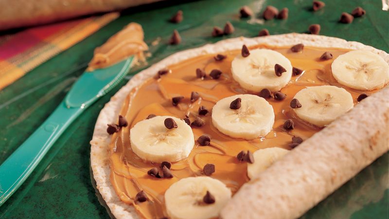 Απλώνουμε στην τορτίγια το φυστικοβούτυρο και από επάνω στρώνουμε την μπανάνα την οποία την έχουμε κόψει σε μικρές ροδέλες. Τυλίγουμε σε ρολό και αν είναι μεγάλη η τορτίγια την κόβουμε στην μέση. Το σταθεροποιούμε με μία οδοντογλυφίδα. Έτοιμο και πεντανόστιμο. Μπορεί να γίνει και με άλλο βούτυρο ξηρού καρπού όπως αμυγδαλοβούτυρο ή ακόμα και με ταχίνι. Αυτοσχεδίασε σύμφωνα με τις προτιμήσεις του δικού σου παιδιού.